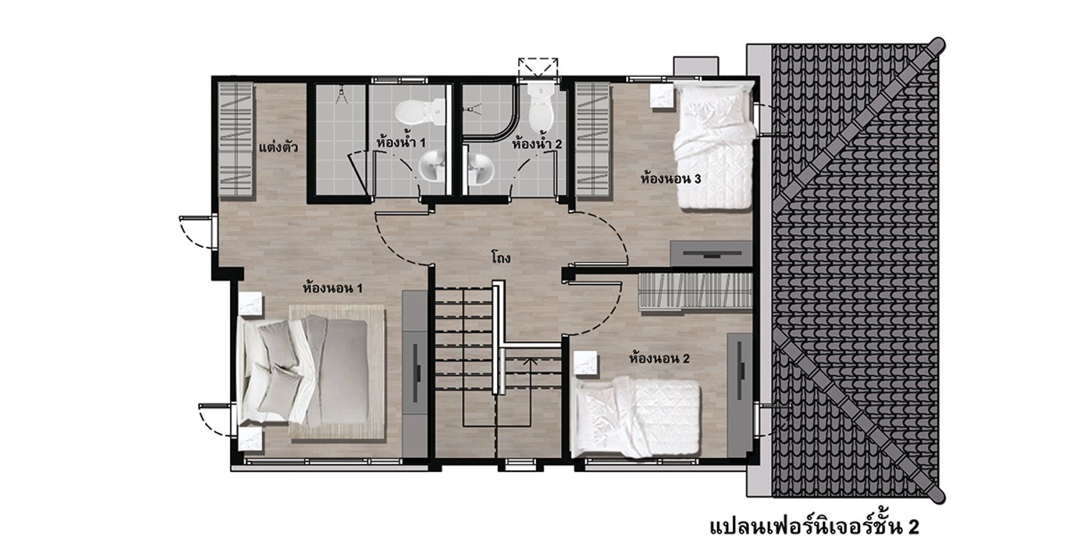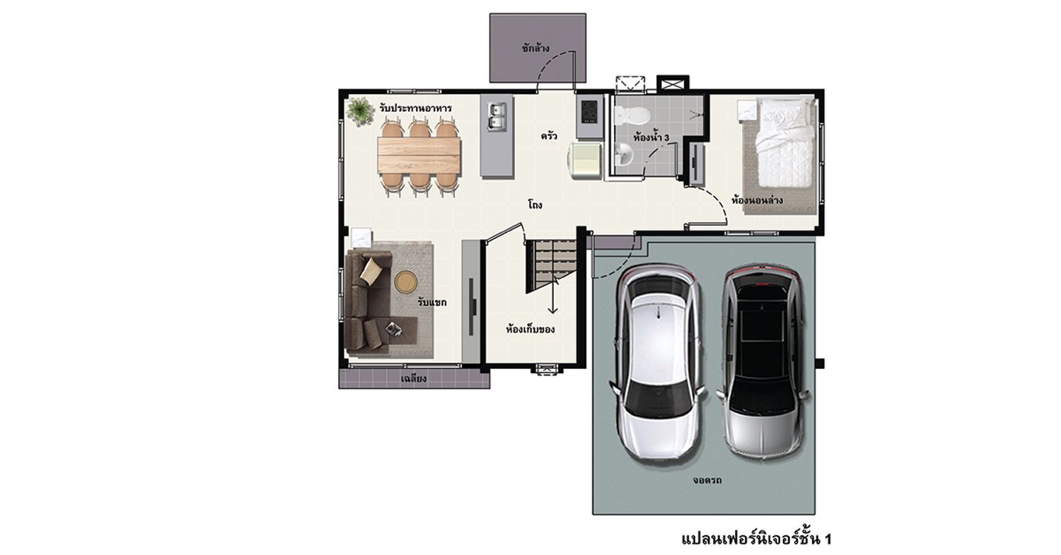 * โดดเด่นด้วยสัดส่วนการจัดวางฟังก์ชั่นภายในบ้าน ที่จัดวางได้อย่างลงตัวตอบรับการใช้ชีวิตของทุกคนในครอบครัว