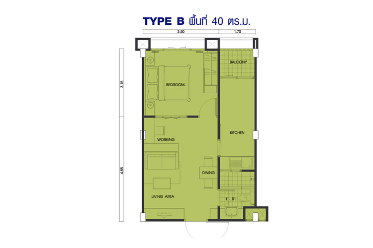 เนื้อที่โครงการ 4 ไร่ 2 งาน 44 ตร.วา