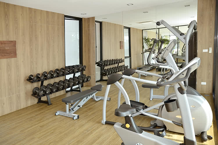 ภายในวางเครื่องออกกำลังกาย ประมาณ 4 เครื่อง พร้อมโซนเวทเทรนนิ่ง