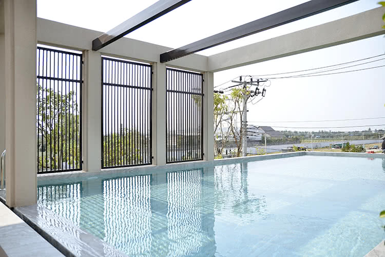 สระแบบ Outdoor ระบบเกลือ ขนาด 5x10 เมตร และลึก 1.2 เมตร
