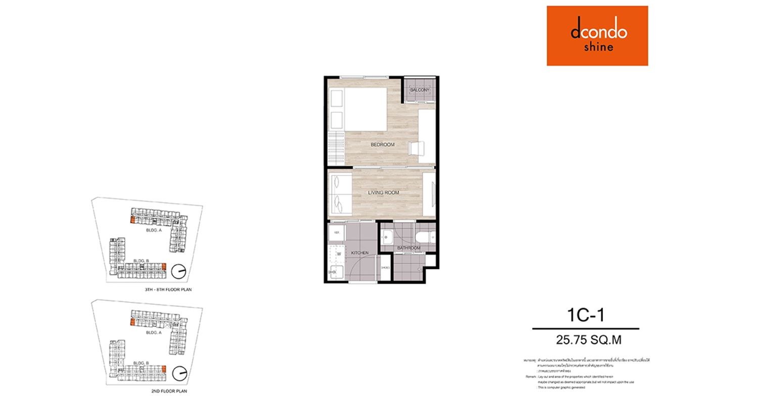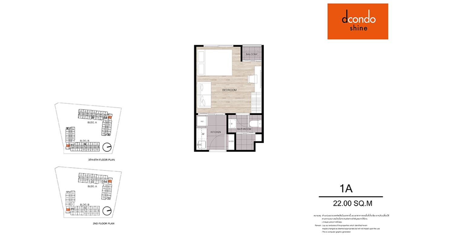 * 1 Bedroom Type S ขนาด 22 ตร.ม.