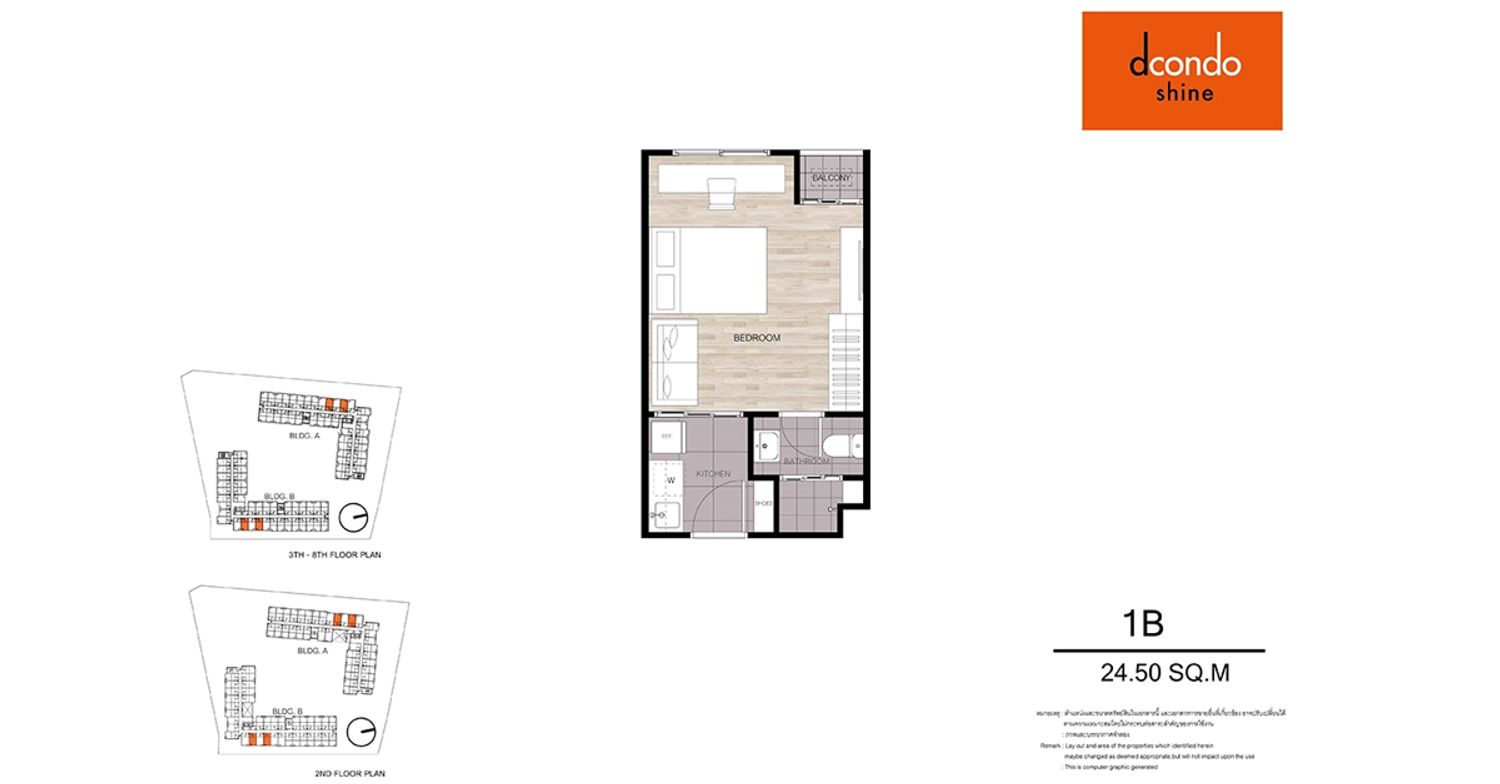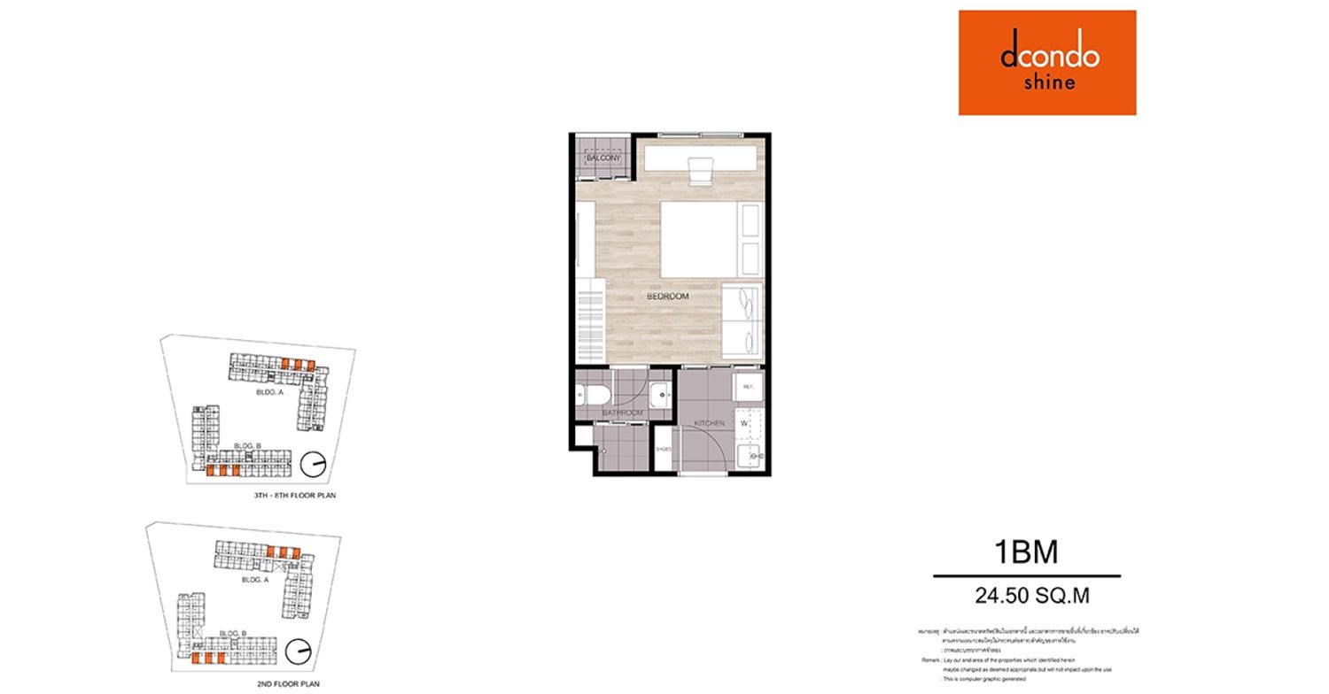 * 1 Bedroom Type M ขนาด 24.5 ตร.ม.