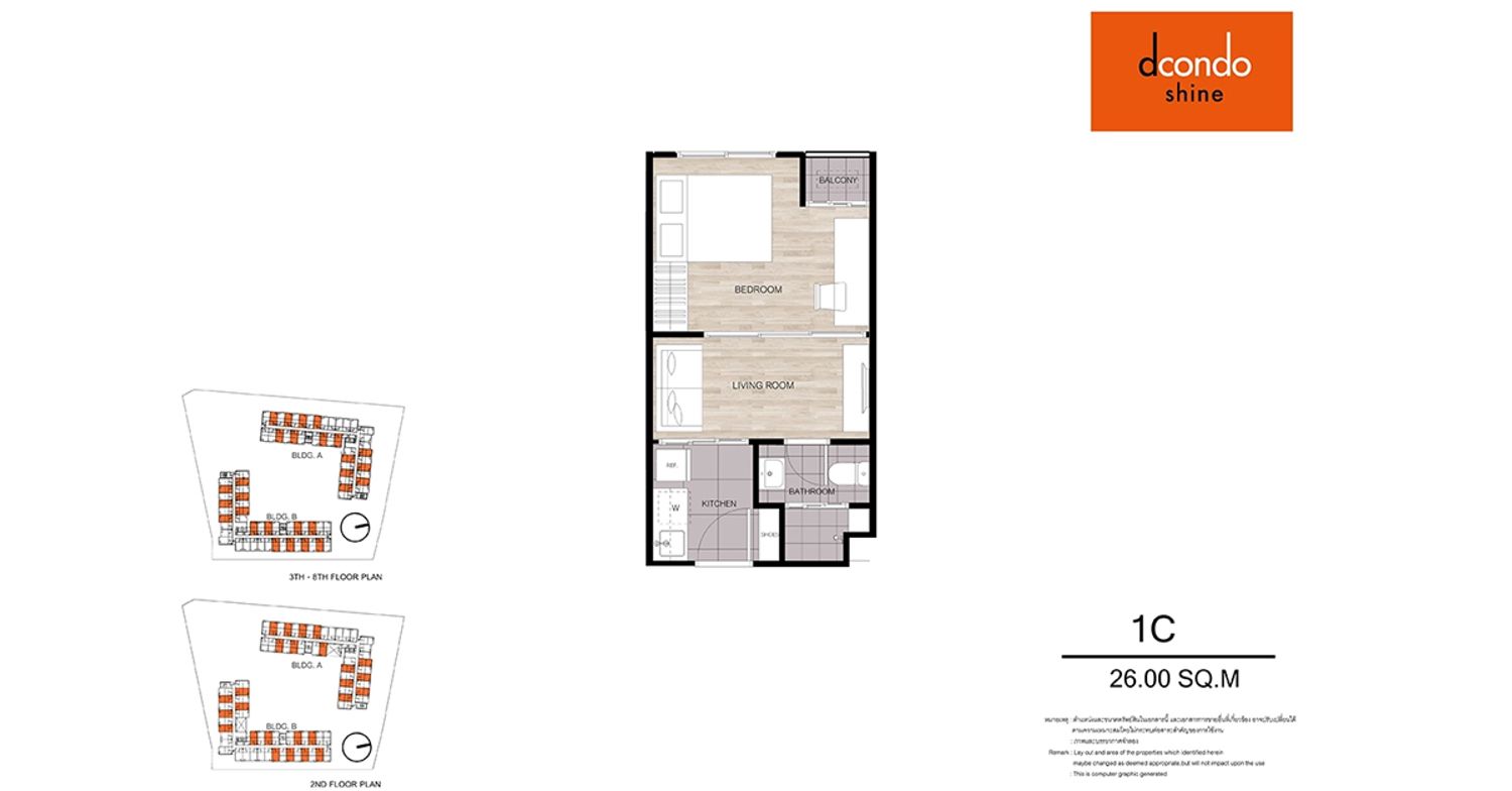 * 1 Bedroom Type L ขนาด 26 ตร.ม.