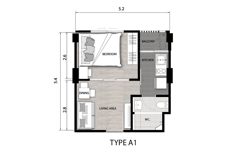 Type A1 ในโครงการ นิช ไอดี พระราม 2 - ดาวคะนอง เฟส 3, ภาพที่ 2
