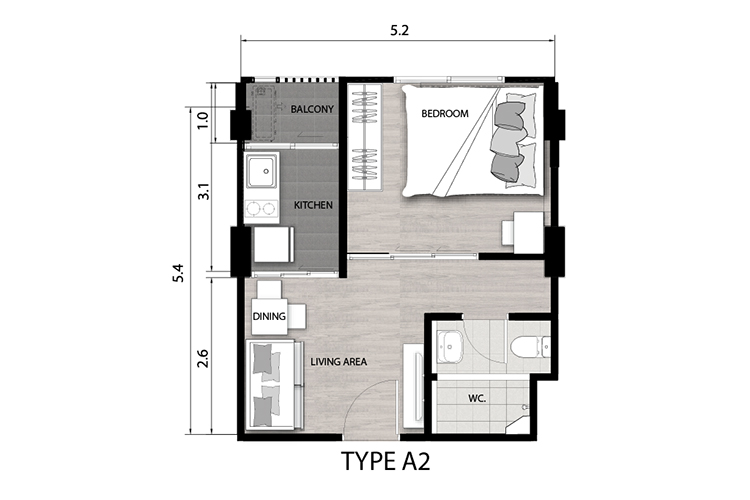 จุดเด่นของแบบห้อง Type A2