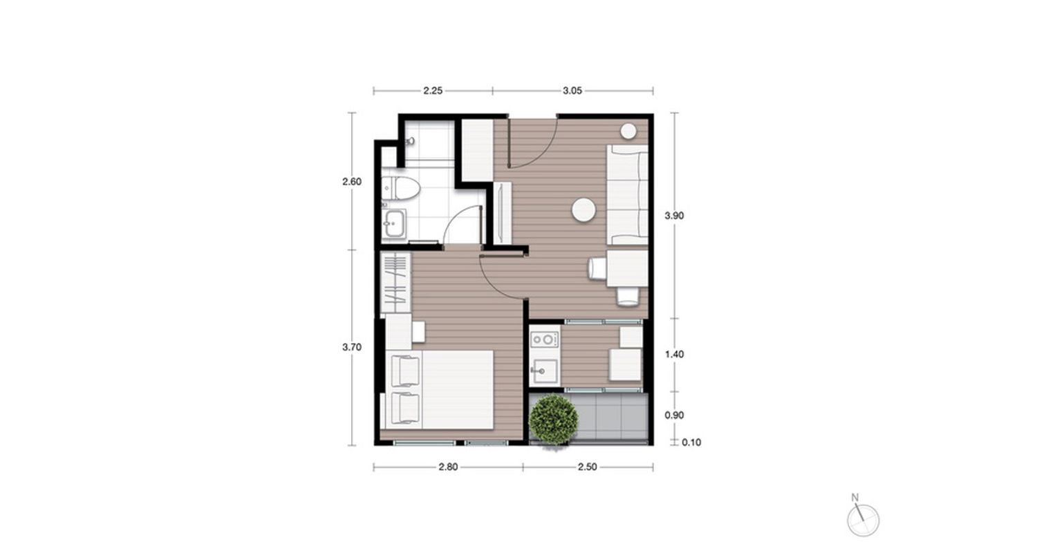 * 1 Bedroom (L) ขนาด 34.5 ตร.ม.