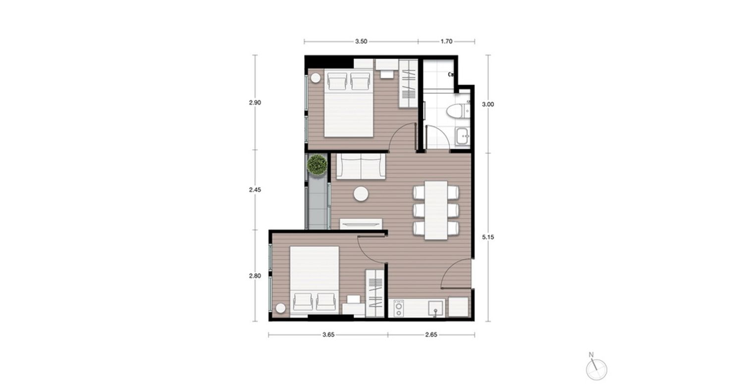 * 2 Bedrooms (M) ขนาด 50 ตร.ม.