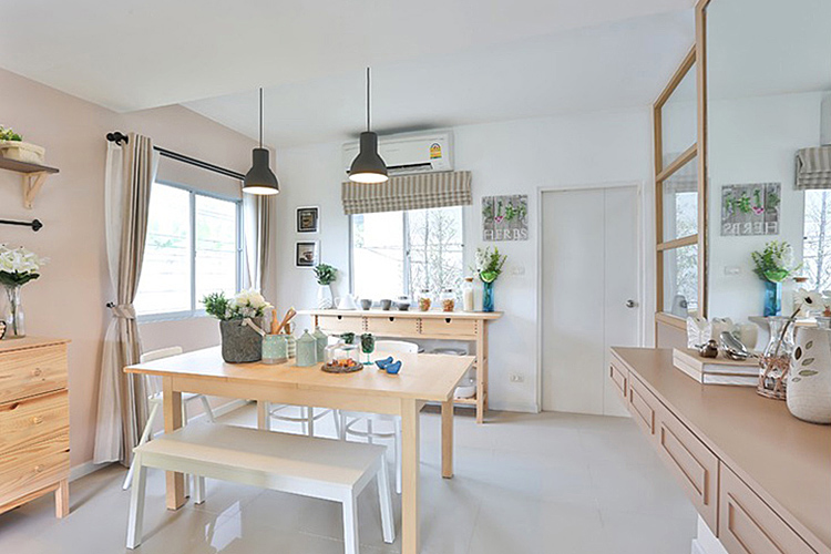 บ้านพฤกษา 92 รังสิต – ลำลูกกา จากแนวคิดสะท้อนภาพลักษณ์ของงานสถาปัตยกรรมแบบ modern contemporary ออกแบบโดยเน้นประโยชน์ใช้สอยเป็นสำคัญเพื่อให้เป็นบ้านที่มีความคุ้มค่ามากที่สุด ที่เน้นหน้ากว้างของห้องเป็นพิเศษและขยายพื้นที่ส่วนของครัวภายในบ้านให้เป็นสัดส่วนมากยิ่งขึ้น เสริมด้วยการตกแต่งที่มี function เป็นแผงระแนงบังแอร์ จังหวะของระนาบและเส้นสายที่เรียบง่าย สามารถใช้ประโยชน์ได้จริงทุกพื้นที่ของตัวบ้าน วัสดุที่เลือกใช้นั้น ก็คำนึงถึงการใช้จริง ทนทาน และแก้ไขปรับเปลี่ยนได้ตามความเหมาะสมของการใช้งาน