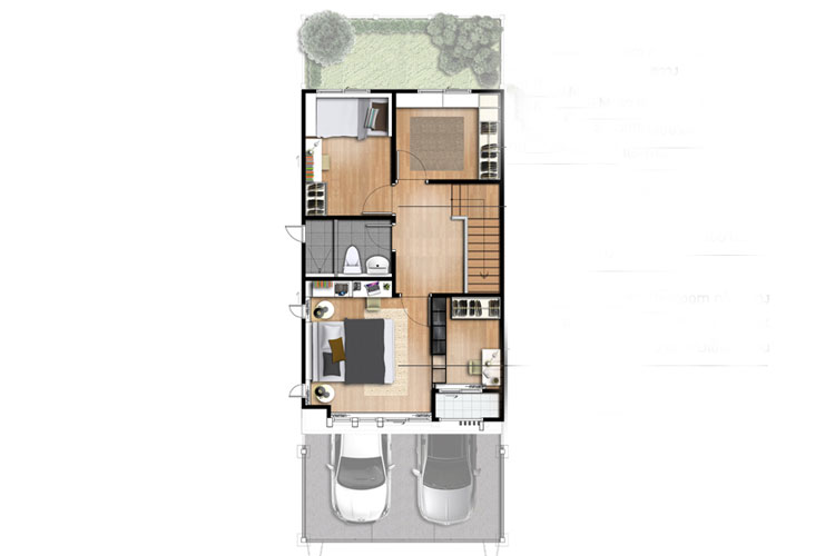 * โครงการเน้นการออกแบบฟังก์ชั่นที่ครบครันและลงตัว ด้วยการใช้วัสดุที่ได้มาตรฐาน อาทิ ประตู หน้าต่าง อลูมิเนียม พาวเดอร์โคท สุขภัณฑ์จาก American Standard และพื้นบันได ราวจับไม้จากGlulam