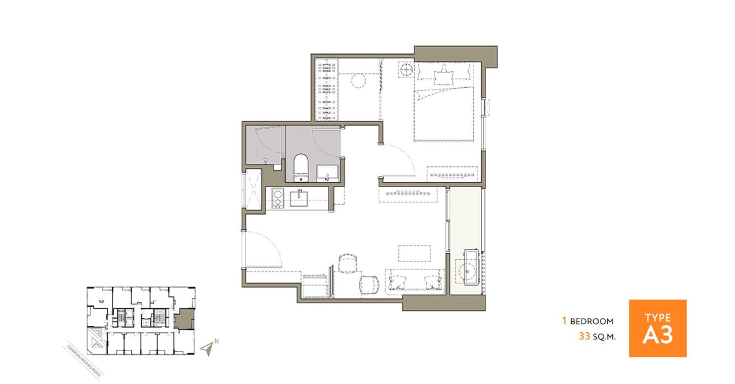 * 1 Bedroom ขนาด 31 – 48 ตร.ม.
