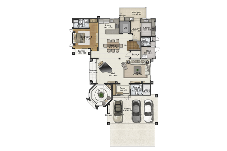 * ออกแบบสวนพักผ่อนจากสวนตามปราสาทในแถบยุโรป ที่ให้บรรยากาศของความเป็นธรรมชาติ สงบ และเป็นส่วนตัว
