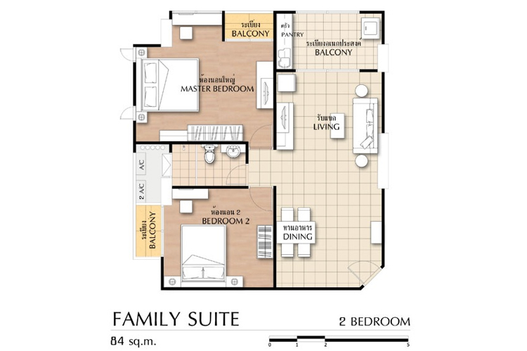 พื้นที่สีเขียวเปิดโล่งกว่า 77% ที่สร้างสรรค์เป็นสวนพักผ่อนงดงามในรูปแบบ Tropicana Style และสวนลอยฟ้าขนาดใหญ่
