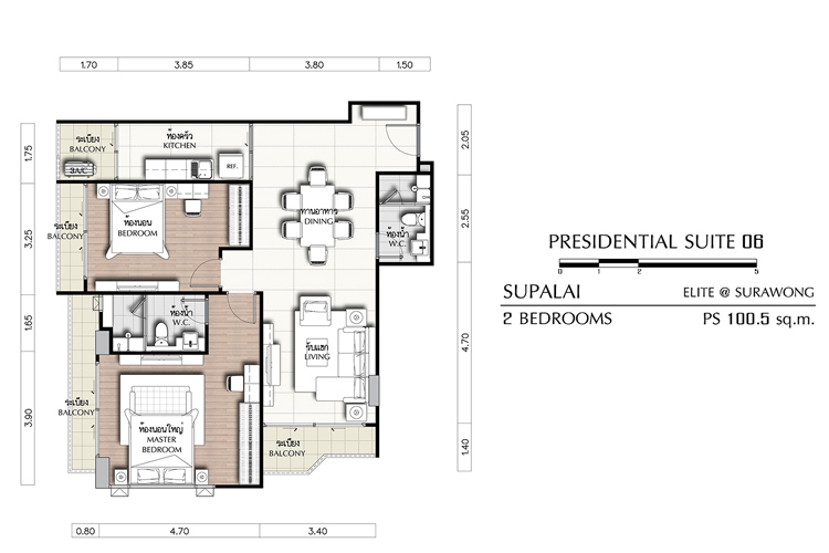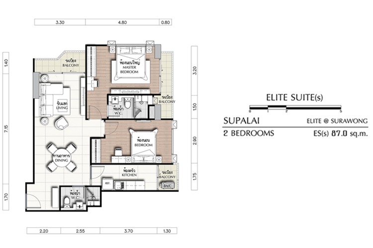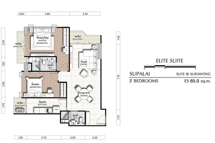 ศุภาลัย เอลีท สุรวงศ์ นำรูปแบบของเส้น (Infinity) ที่บ่งบอกถึงการเคลื่อนไหวแบบอิสระไม่มีที่สิ้นสุด มาปรับใช้ กับองค์ประกอบของอาคาร โดยสร้างความต่อเนื่องของเส้นสายและการหักมุมโค้งเพื่อให้เกิดความลื่นไหล รวมทั้งการสร้างความกลมกลืนด้วยเส้นโค้งที่เชื่อมต่อกัน ภายในโครงการเพียบพร้อมด้วยสิ่งอำนวยความสะดวก