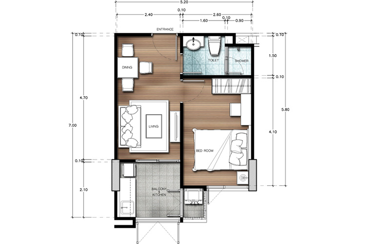เนื้อที่โครงการ 1 ไร่ 2 งาน 7 ตร.วา