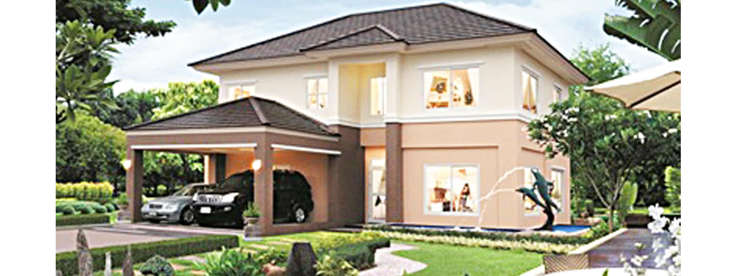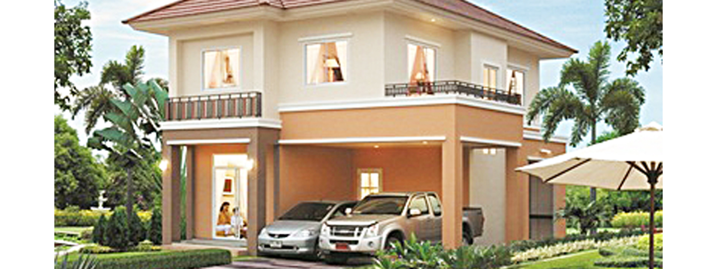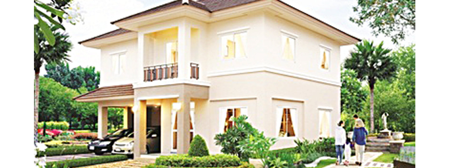 * ถนนหลักภายในโครงการกว้าง พร้อมต้นไม้ใหญ่ให้ความร่มรื่น