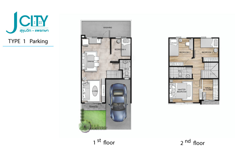 ทาวน์โฮมสองชั้น ในโครงการ เจ ซิตี้ สุขุมวิท - แพรกษา