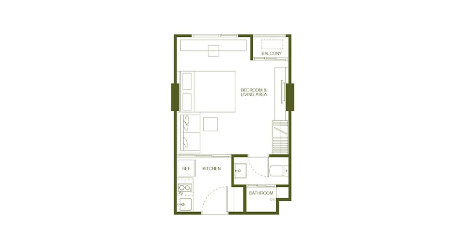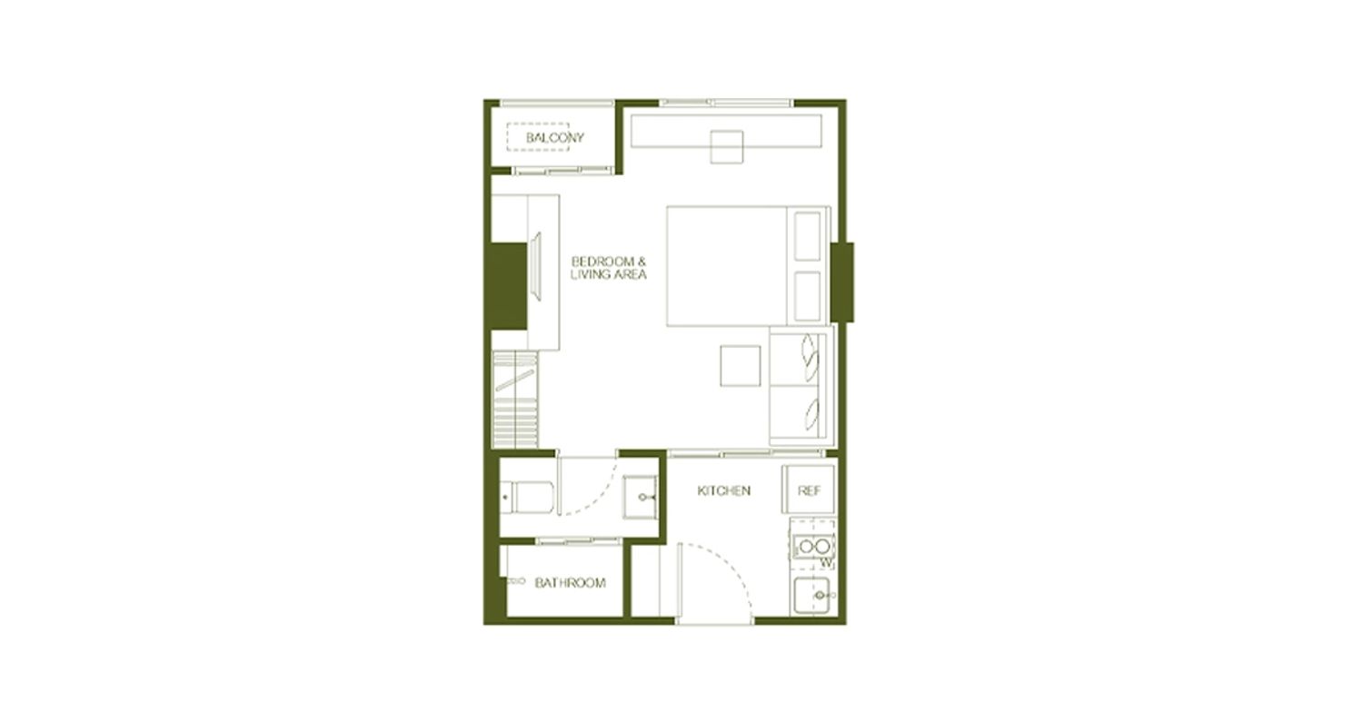 * 1 ห้องนอน 1 ห้องน้ำ ขนาด 26.50-31.50 ตร.ม.