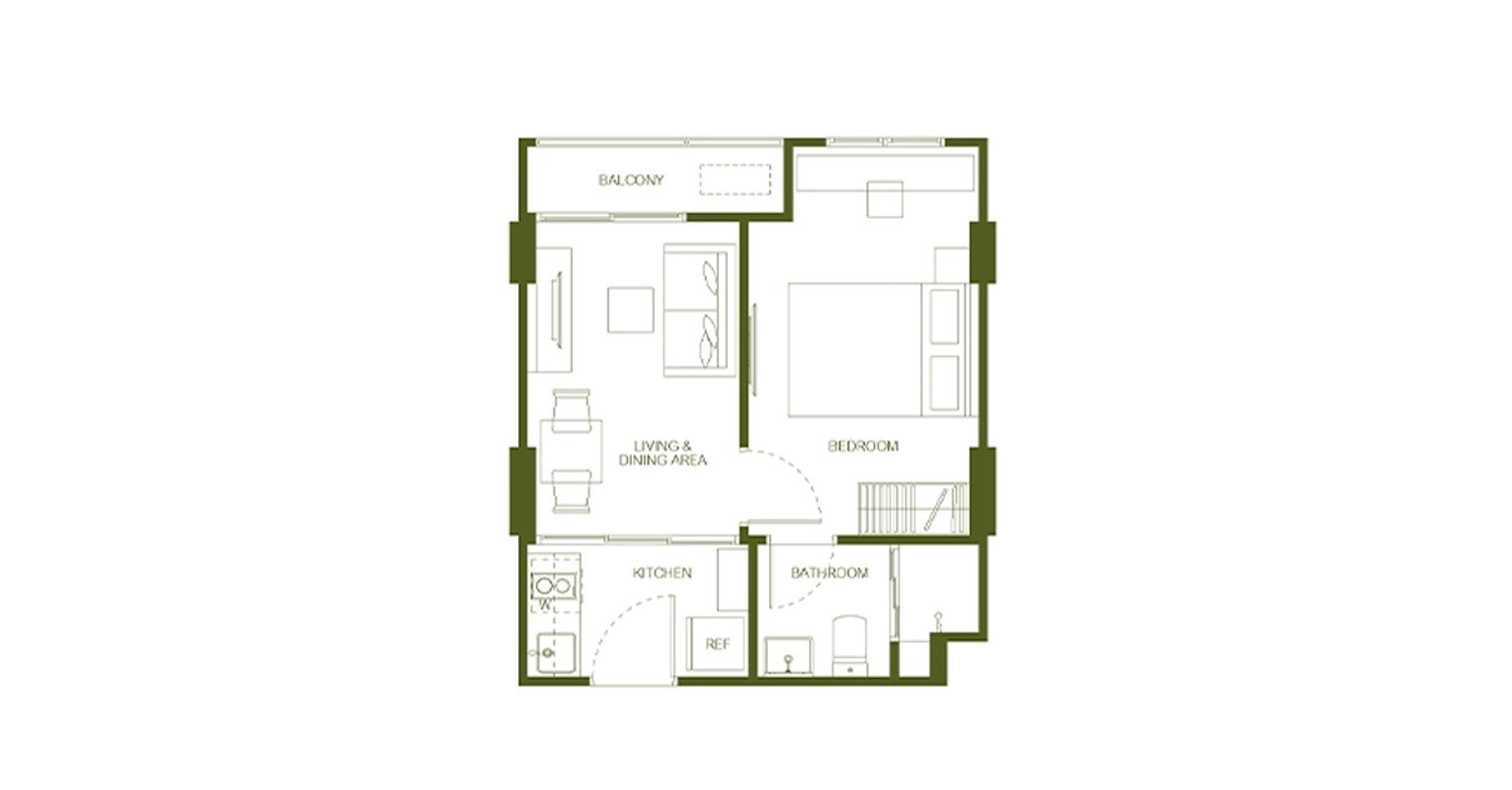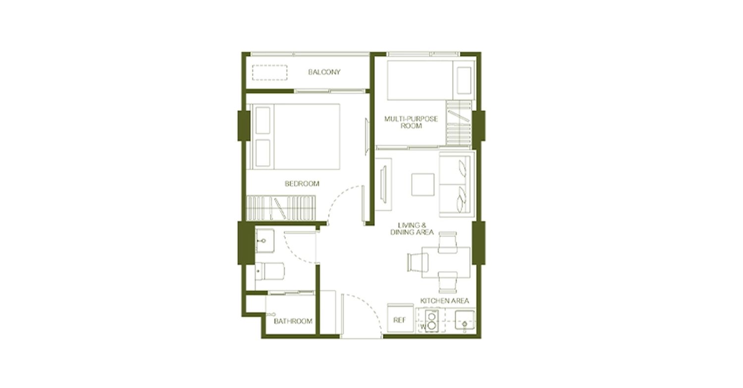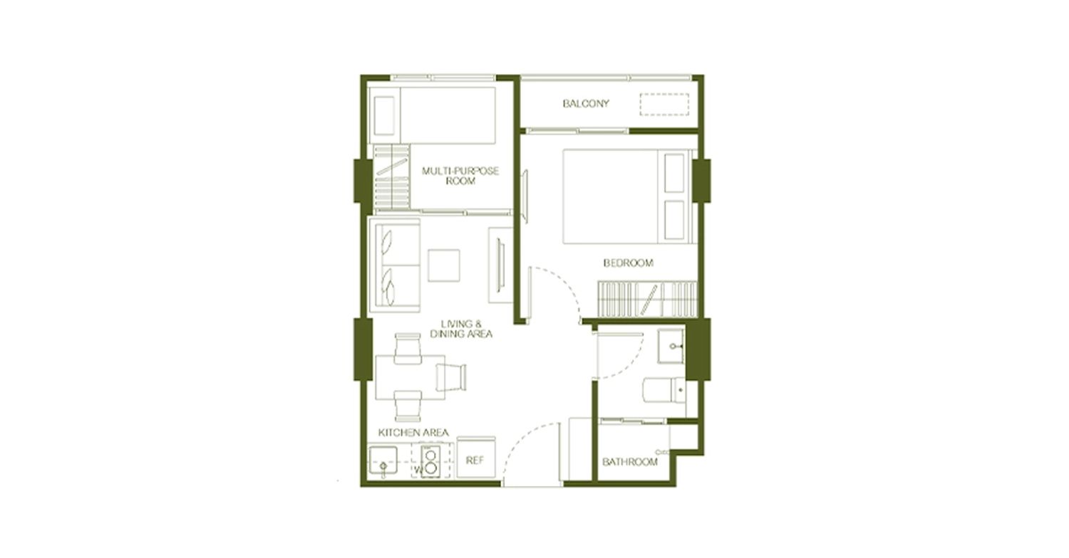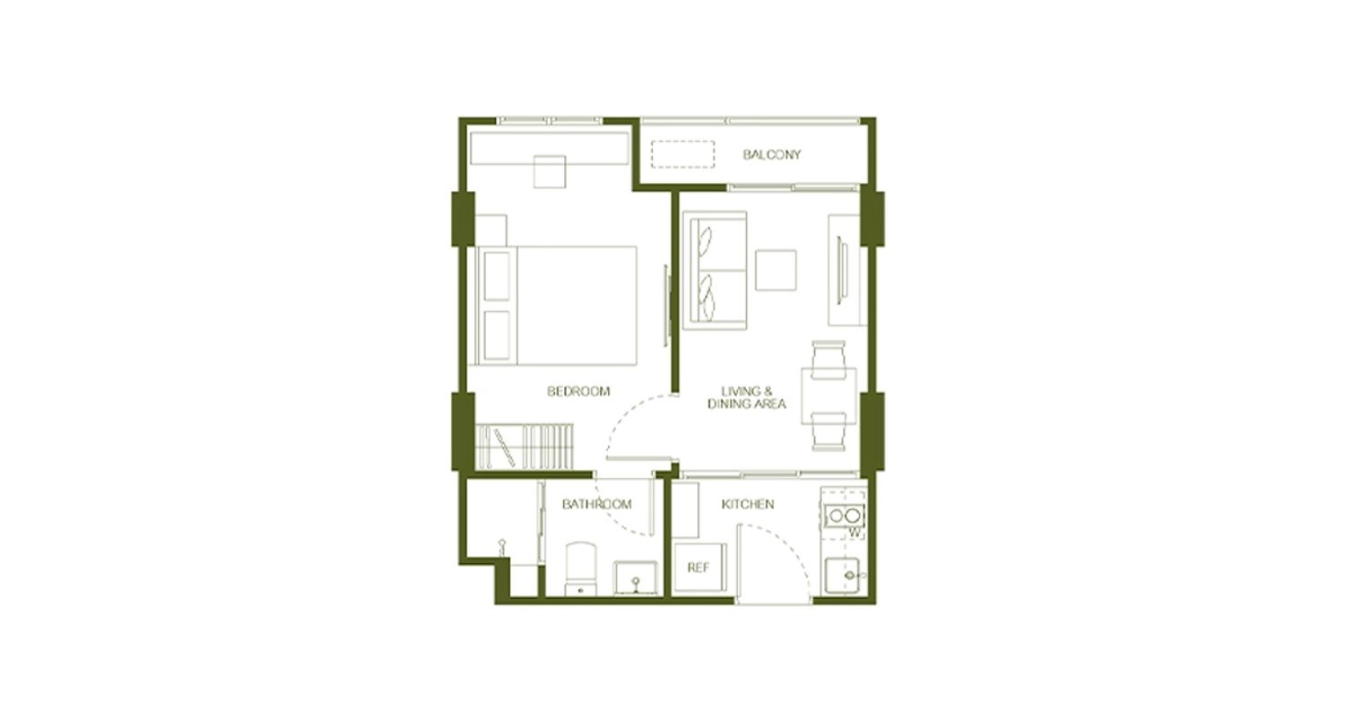 * 1 ห้องนอน 1 ห้องน้ำ 1 ห้องอเนกประสงค์ ขนาด 34.00-35.25 ตร.ม.