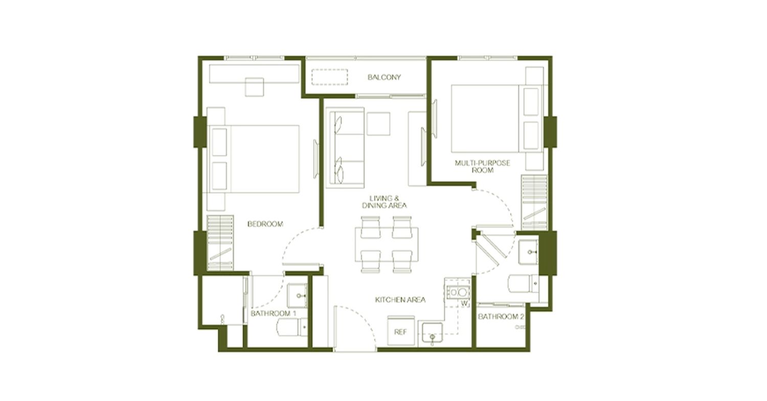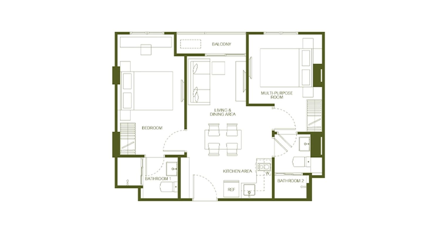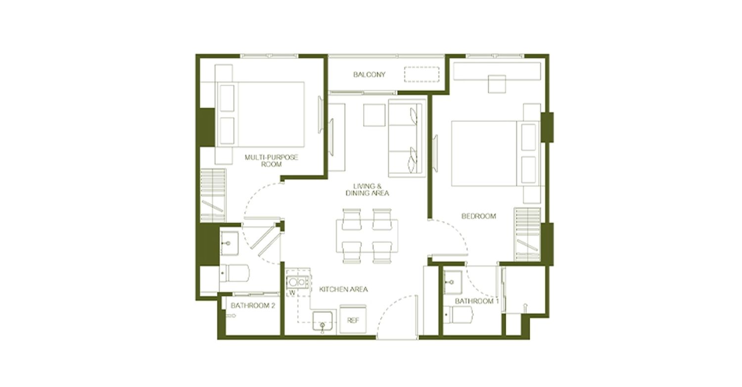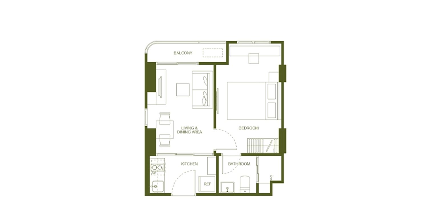 * 1 ห้องนอน 1 ห้องน้ำ 1 ห้องอเนกประสงค์ ขนาด 34.00-35.25 ตร.ม.