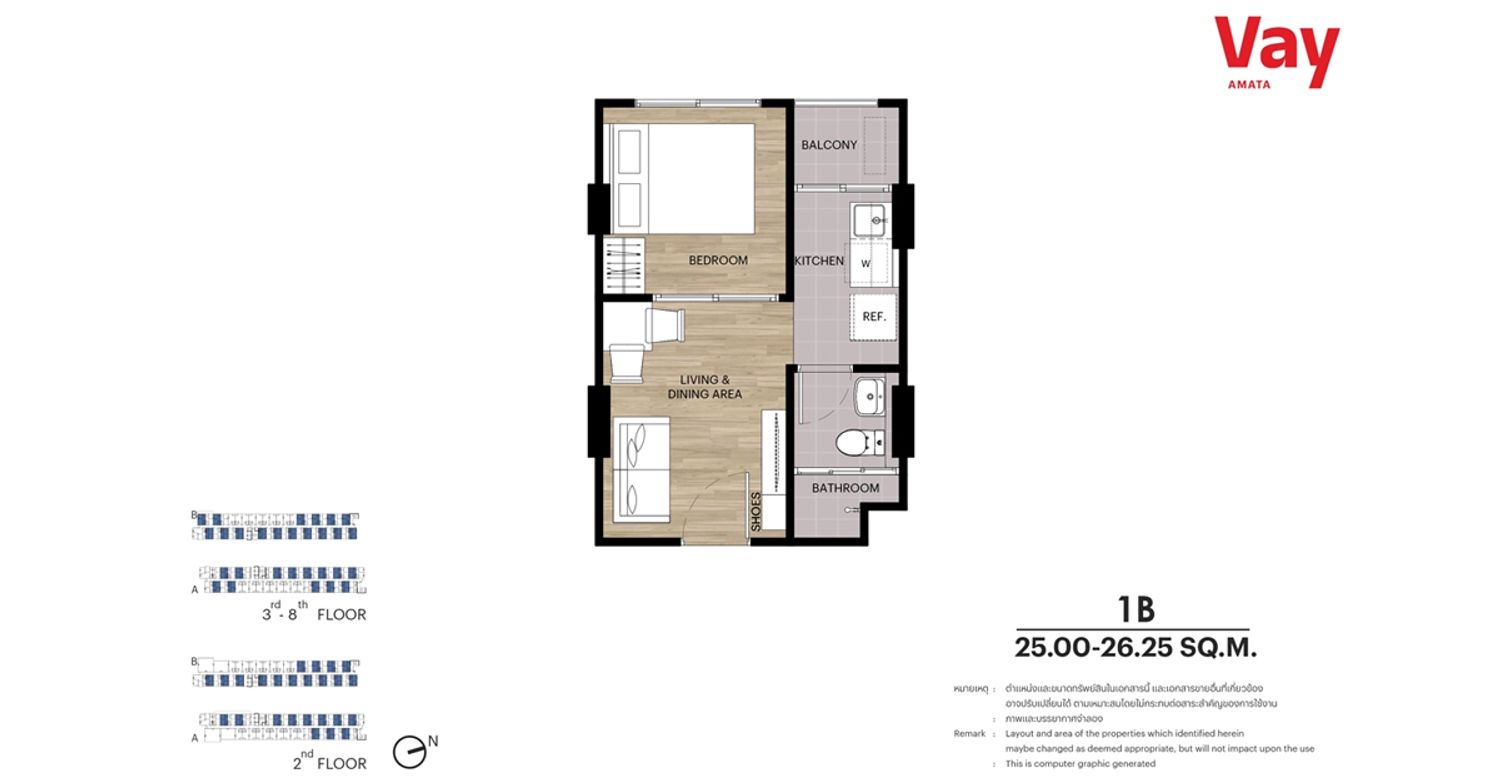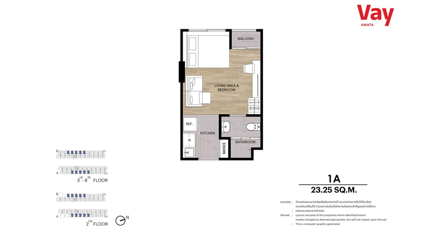 * 1 Bedroom (S) ขนาด 23.25 ตร.ม.