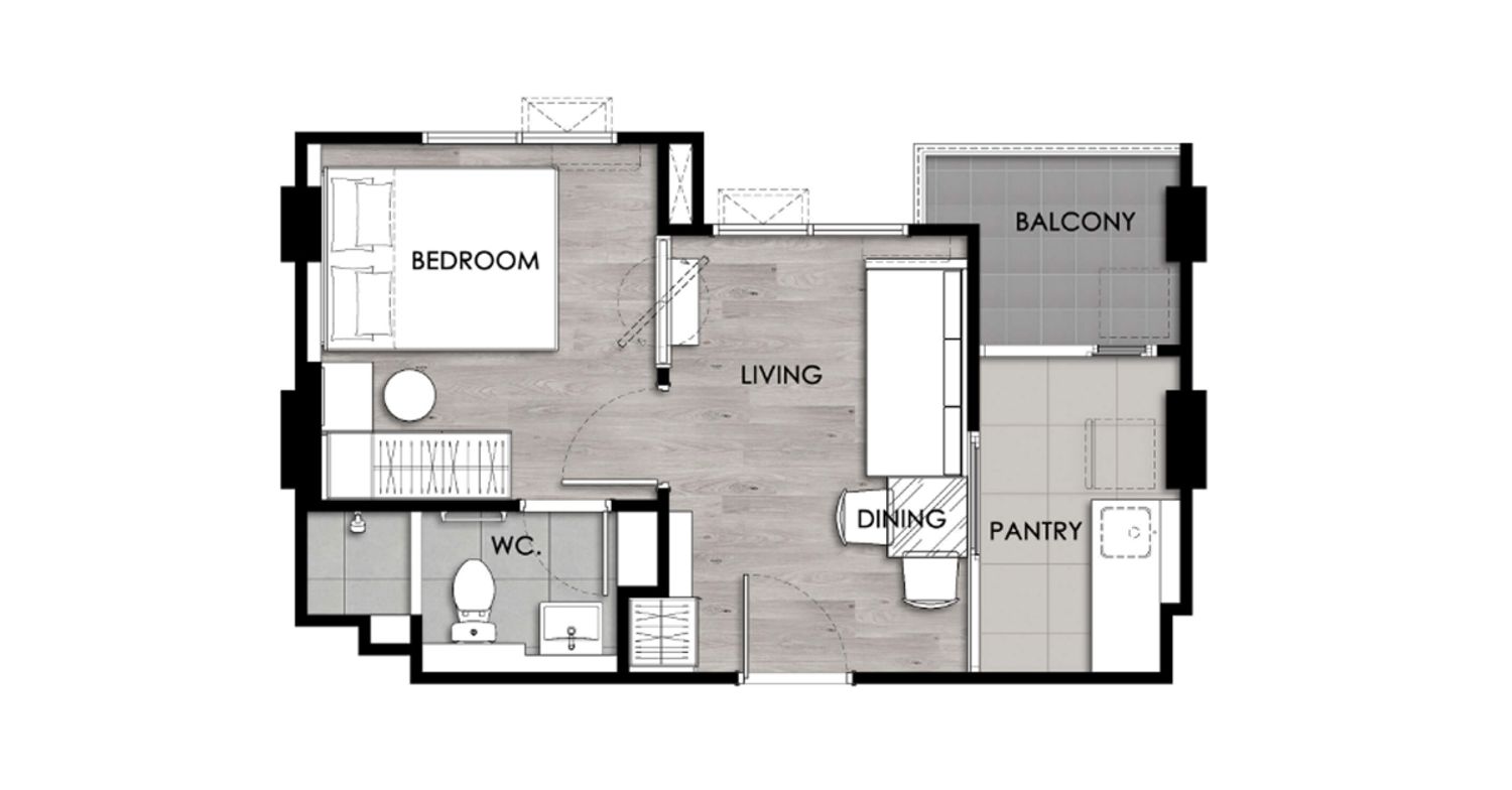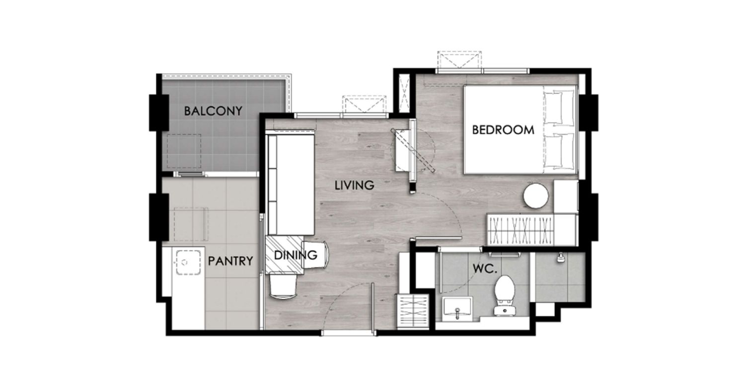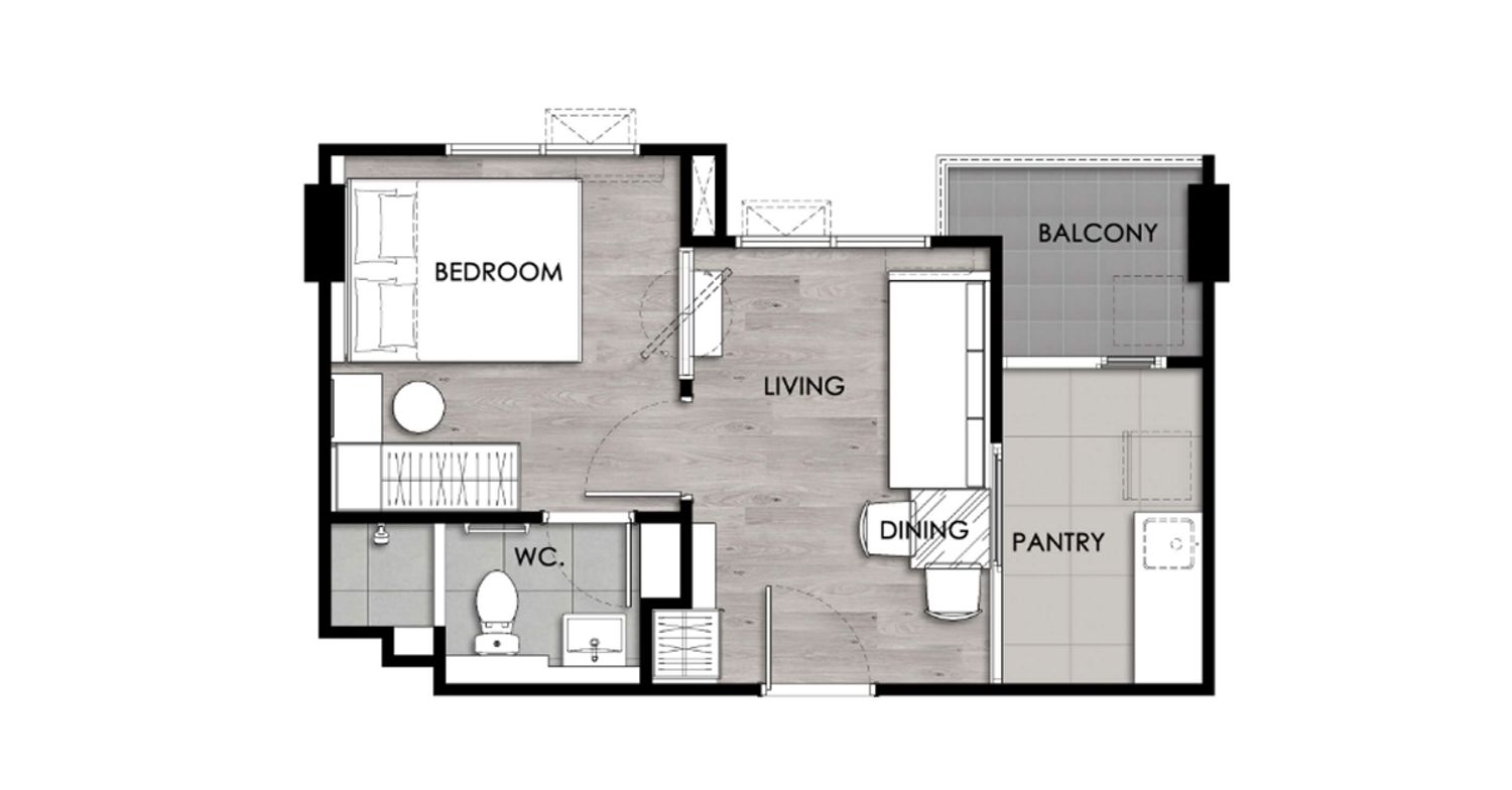 * Room Type C พื้นที่ใช้สอย 32 ตร.ม.
