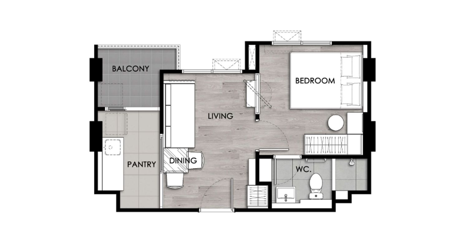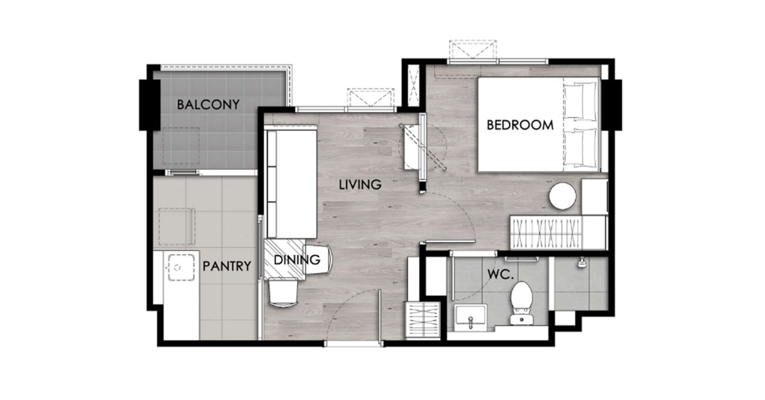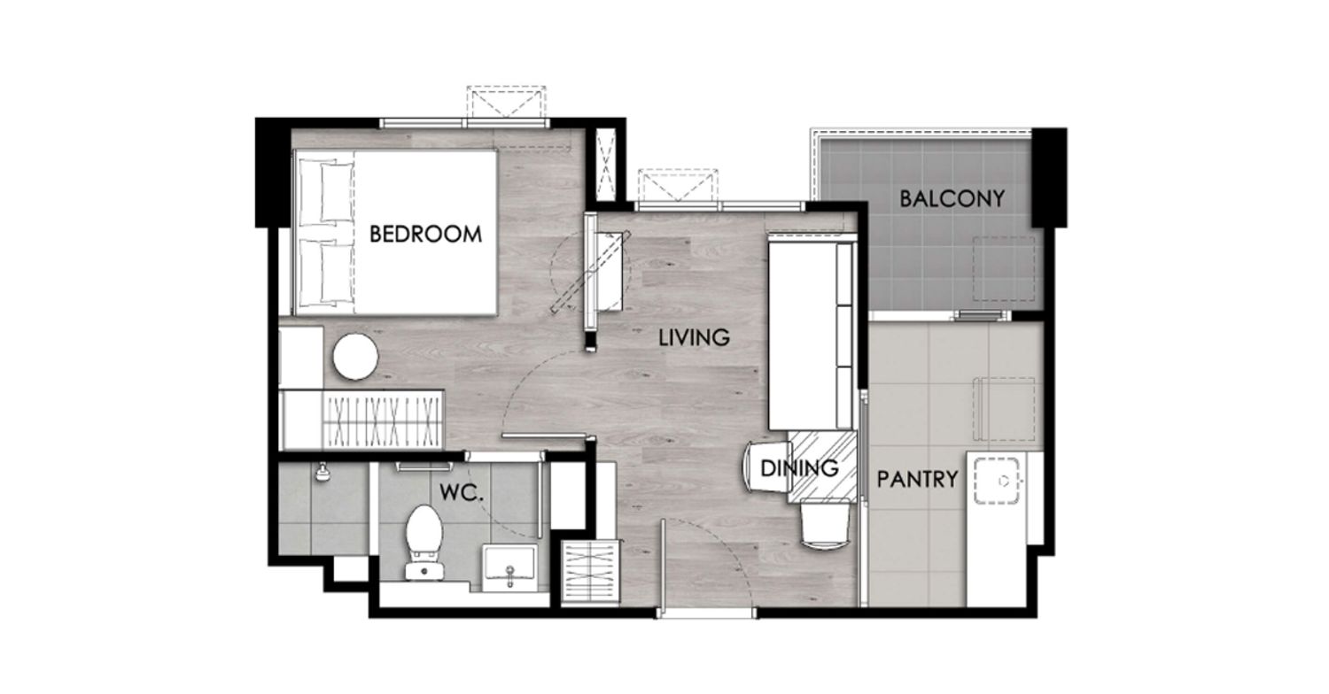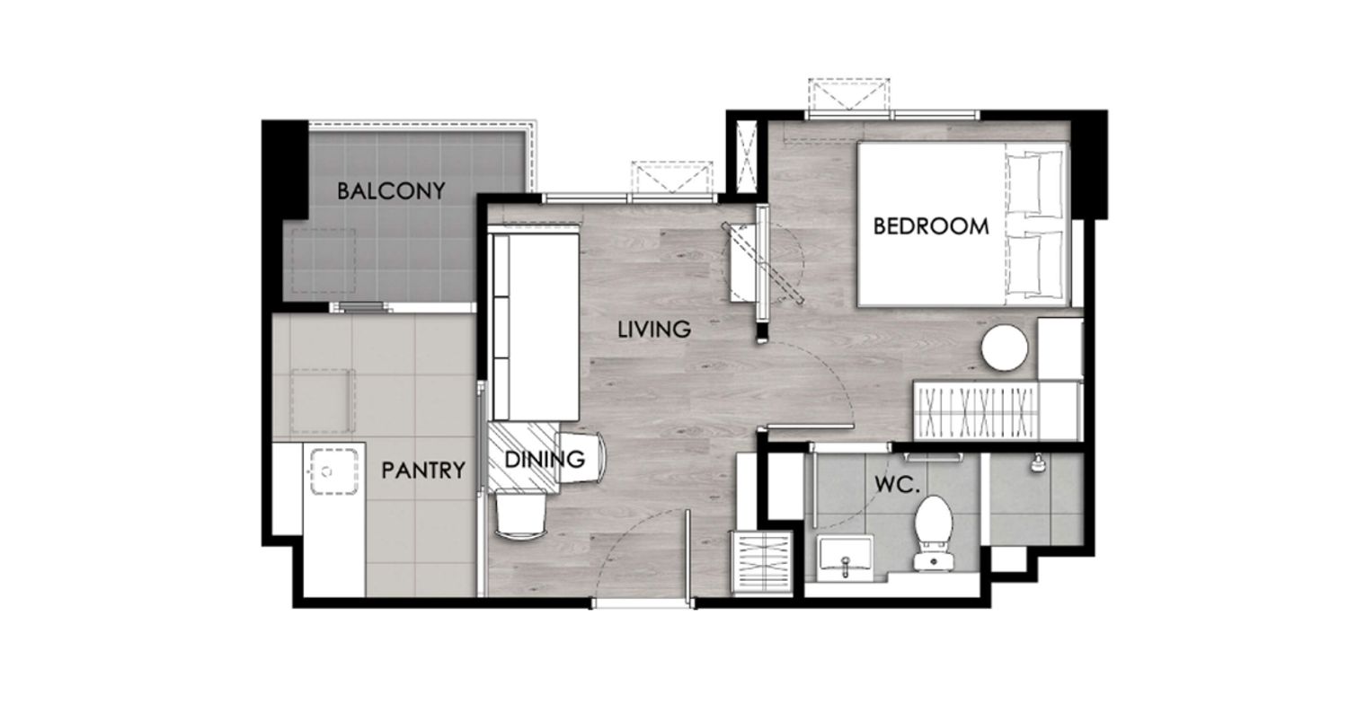 * Room Type C พื้นที่ใช้สอย 32 ตร.ม.