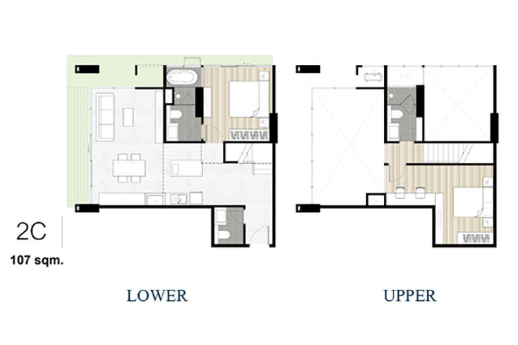 จุดเด่นของแบบห้อง 2 Bedroom Duplex